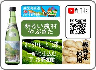 | 芋とあ茶を一緒に仕込む 第1弾は「お茶娘」 害2弾は「茶房 大海庵」 濃厚な仕上がりで上品なお茶の香りと 芋焼酎が一緒に楽しめます | 霧島市のお茶とさつまいもで仕込む お茶焼酎を3番目に発売した 「明るい農村 やぶきた」 優しいお茶の風味をお楽しみ下さい 入荷待ち |